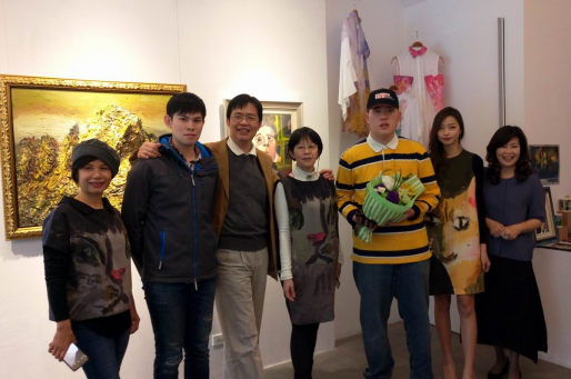 - 羅得嘉(右三)個展除了令人驚艷的豐沛創作力,還有結合他作品的服飾讓藝術穿上身。(記者楊文琳攝)