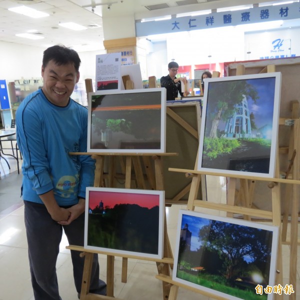 身障藝術家蔡尚賢展示攝影作品。(記者蘇金鳳攝)