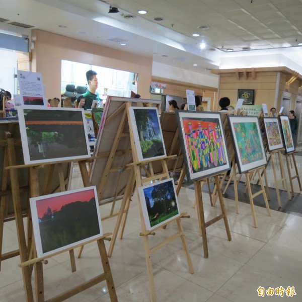 大里仁愛醫院與台灣身心障礙藝術發展協會合作,今天在大里仁愛醫院一樓大樓展示多幅身障藝術家的作品。(記者蘇金鳳攝)