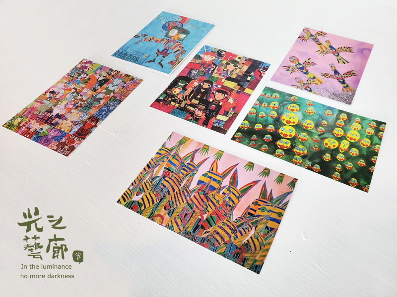 黃啟禎X王耀樟《星樂園》展覽明信片組 定價:50元 尺寸:14.8×10.5cm(六張一組) 文創商品介紹: 光之藝廊與HTC合作「星樂園:黃啟禎X王耀樟雙個展」,特別製作明信片組收錄藝術家黃啟禎及王耀樟各三件的作品,讓您也能透過明信片收藏兩位藝術家精彩的畫作!